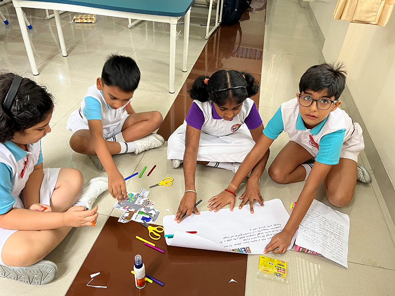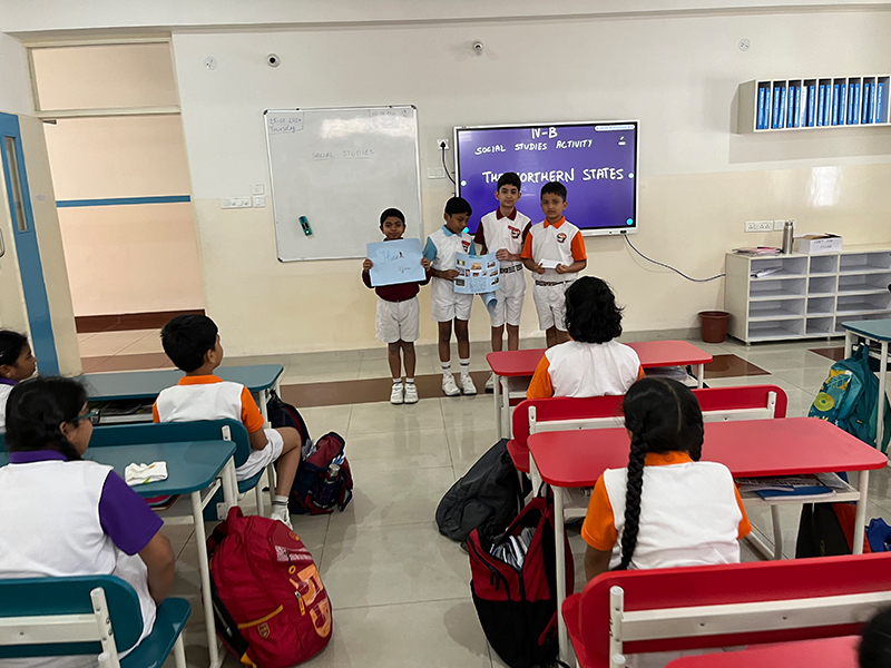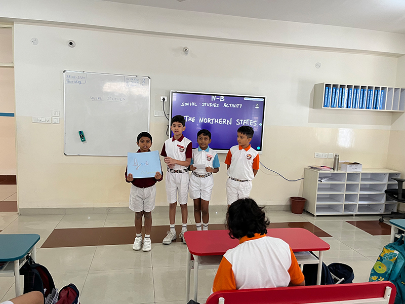 Our students showcased the beauty and diversity of India’s northern states through vibrant collages! Working in groups, they used pictures of landmarks, traditional attire, food, and cultural elements to represent the uniqueness of each state. After completing their masterpieces, they presented them to the class, sharing fascinating insights about the landmarks, traditions, and regional cuisines they depicted.